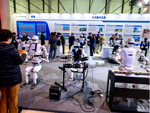 一支“机器人乐队”在2025世界计算大会现场为与会者表演。新华社记者苏晓洲摄